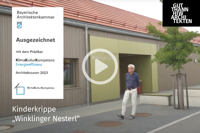 Neben der Auszeichnung zu den diesjährigen Architektouren wurde die Kinderkrippe „Winklinger Nesterl“ auch mit dem neu ausgelobten Prädikat „KlimaKulturKompetenz“ im Bereich Energieeffizienz ausgezeichnet. Die Bayerische Architektenkammer honoriert hier Projekte in fünf Nachhaltigkeitskriterien. Wir Danken für die Wertschätzung und sind sehr stolz auf die Auszeichnung.